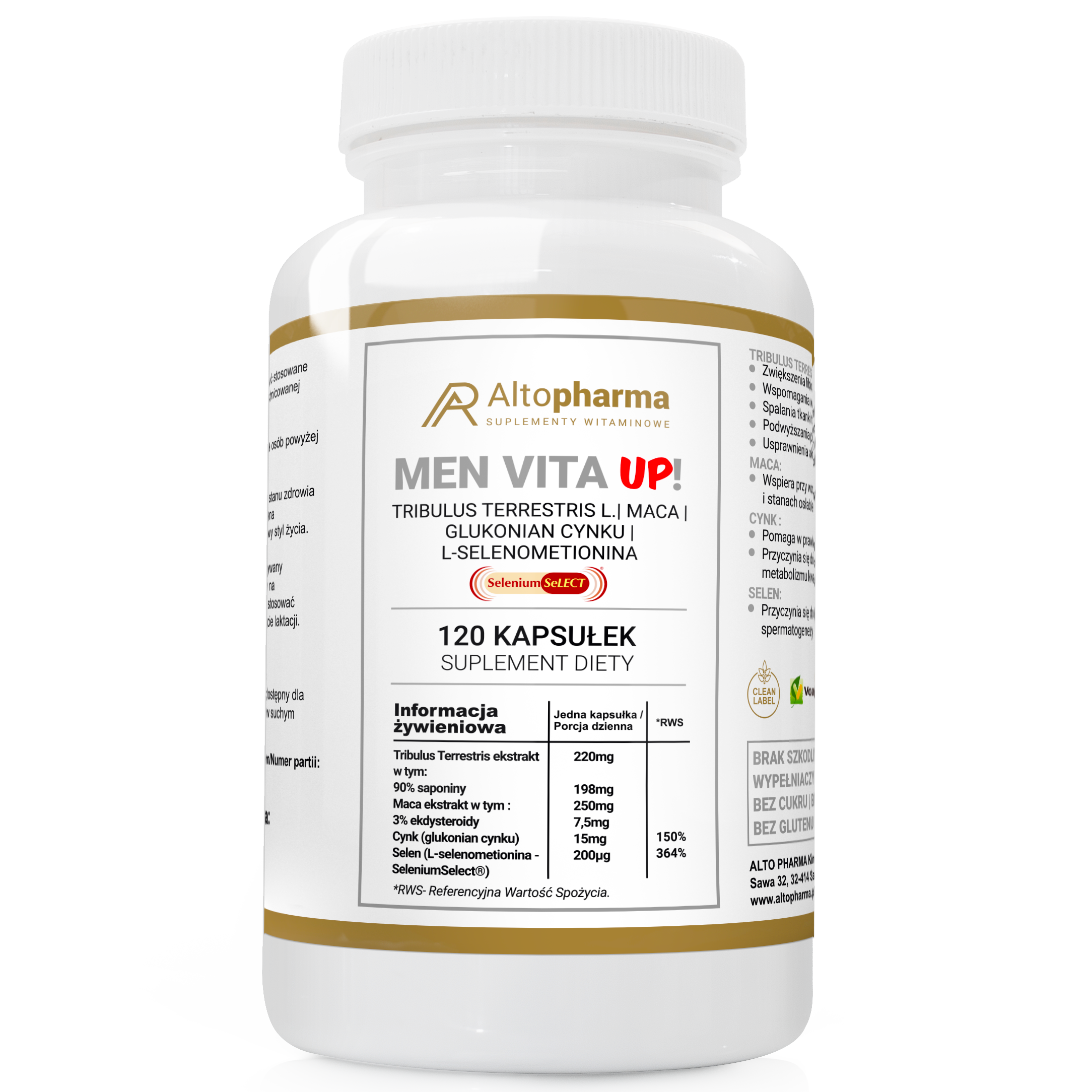 MEN VITA UP! Tribulus Terrestris MACA TESTOSTERON WYSOKIE LIBIDO 120 kapsułek