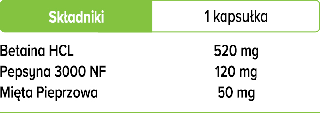 Betaina występuje naturalnie w owocach morza – krewetkach czy małżach, a także w burakach, szpinaku czy otrębach pszennych! Betaina nazywa jest również kwasem solnym, który naturalnie występuje w Twoim żołądku. Zadaniem kwasu solnego w żołądku jest utrzymanie odpowiedniego do trawienia środowiska. Wszelkie zaburzenia ilości kwasu solnego są dość częstą dolegliwością. Nieodpowiednia ilość kwasu solnego – głównie zbyt mała – może sprawić, że będziemy gorzej trawić pokarm, a tym samym gorzej przyswajać substancje odżywcze w nim zawarte.