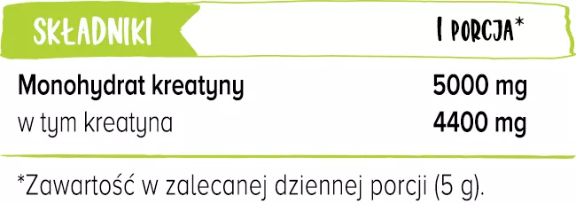 Zaleca się rozpuszczenie jednej porcji (5 g) w około 200 ml wody lub ulubionego napoju. Można również dodać ją do shake’a białkowego lub soku, by dostosować sposób spożycia do osobistych preferencji smakowych. Ważne jest, aby spożywać kreatynę regularnie,  bezpośrednio po treningu lub ok. 30 minut przed, aby maksymalnie wykorzystać jej korzystne właściwości zwiększania wydolności fizycznej i siły mięśniowej.