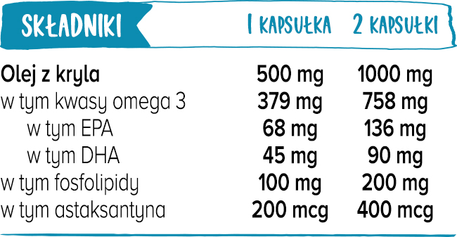 - zawiera omega-3, astaksantynę i fosfolipidy,