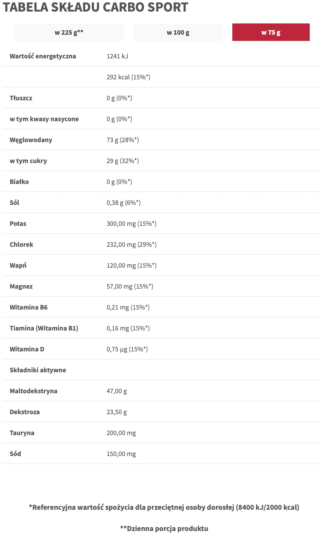 CARBO SPORT jest przeznaczony dla osób uprawiających sporty wytrzymałościowe i wytrzymałościowo-siłowe.
