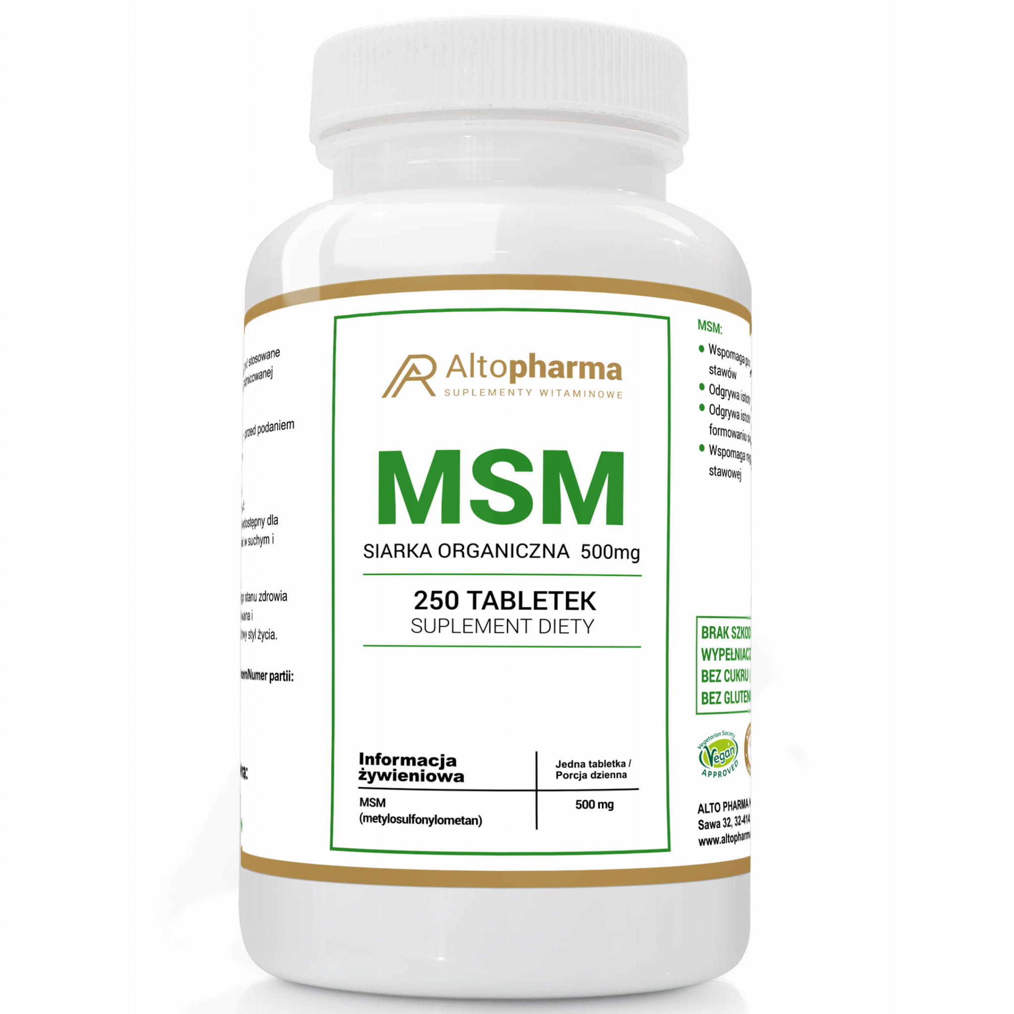 MSM SIARKA ORGANICZNA 500mg STAWY KOŚCI PRODUKT WEGE - Altopharma - 250 tabletek