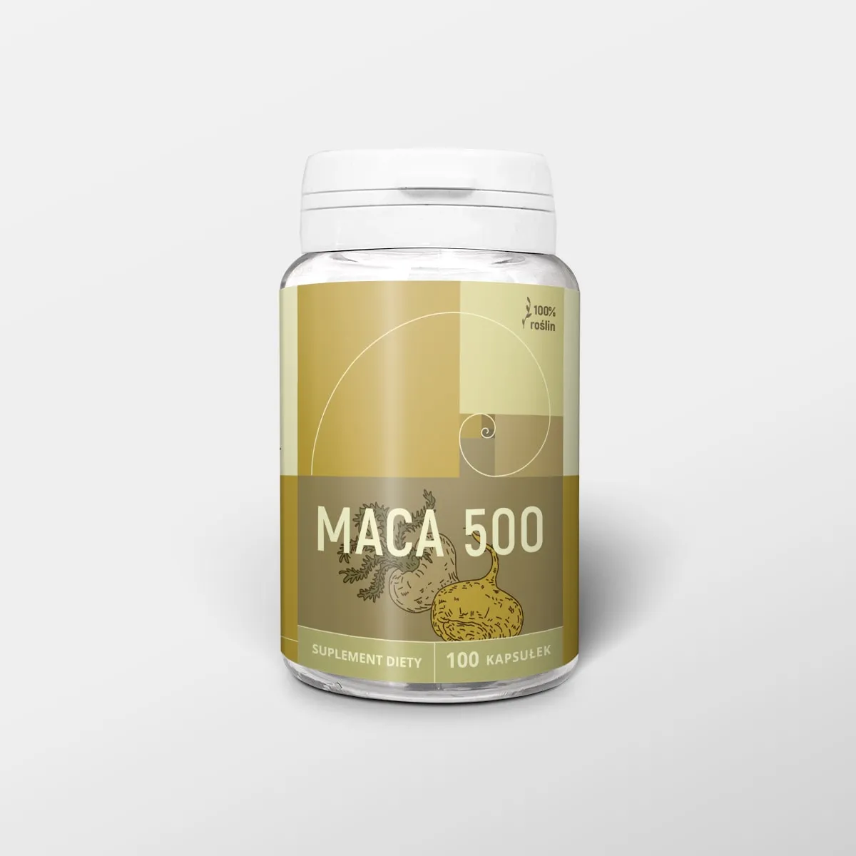 500 mg mielony korzeń Maca (Lepidium meyenii), kapsułka celulozowa.