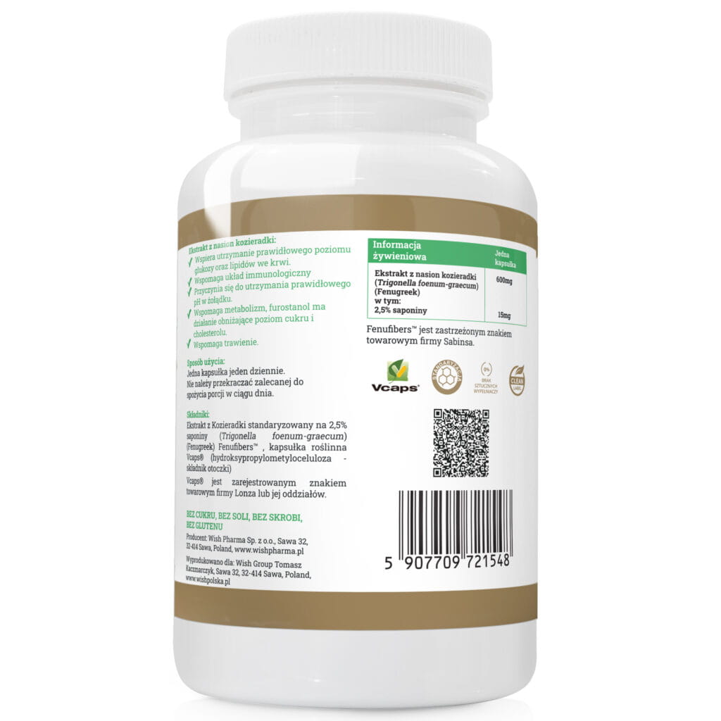 KOZIERADKA Ekstrakt 600mg Fenugreek Poprawa trawienia Obniża cukier 90 kapsułek Produkt Vege