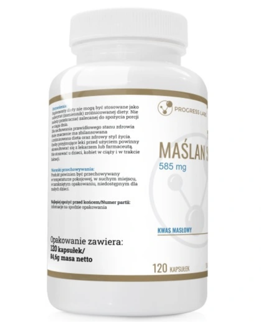 Progress Labs - MAŚLAN SODU 585mg Kwas masłowy Zdrowe serce Jelita Trawienie 120 kapsułek