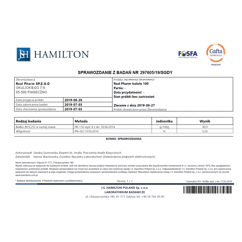 Real Isolate 100 Real Pharm to doskonałej jakości białko, aminokwasy rozgałęzione BCAA wolne od glutenu i substancji spulchniających.