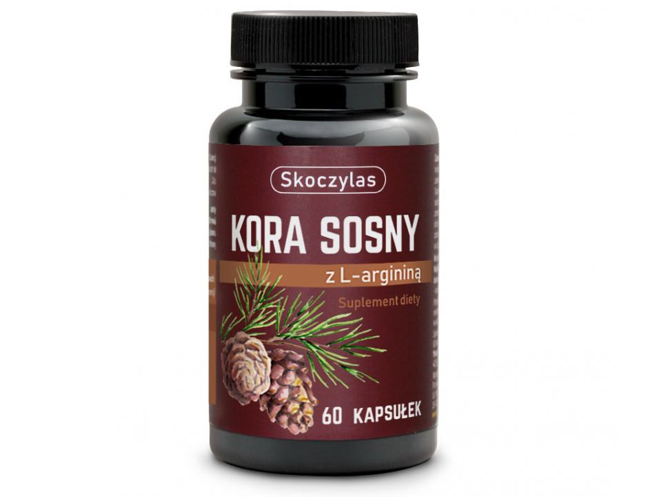 L-arginina, kapsułka (substancja glazurująca-hydroksypropylometyloceluloza), ekstrakt z kory sosny nadmorskiej (Pinus pinaster Ait.), substancja wypełniająca (celuloza mikrokrystaliczna).