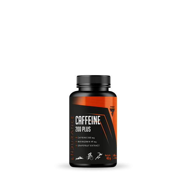 CAFFEINE 200 PLUS to produkt przeznaczony dla profesjonalnych sportowców. Zawiera kofeinę bezwodną oraz naryngeninę, jest to produkt w postaci kapsułek.