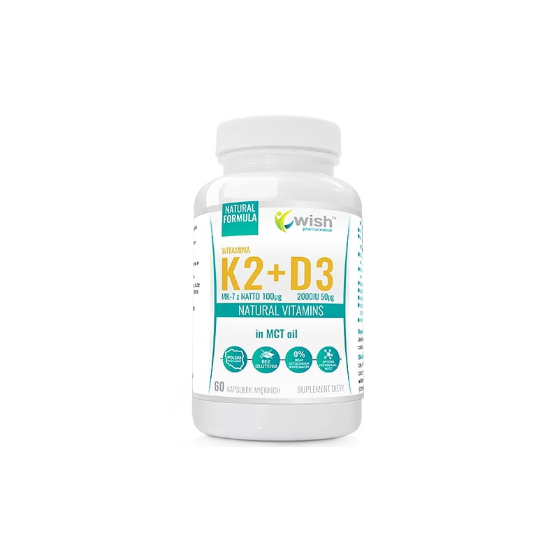 Wish Pharmaceutical - K2 MK-7 100µg + D3 2000IU in MCT Oil 60 kapsułek miękkich