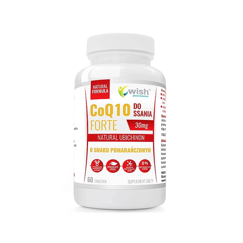 Wish Pharmaceutical - Koenzym Q10 Forte 30mg CoQ10 UBICHINON Do Ssania o smaku pomarańczowym 60 tabletek