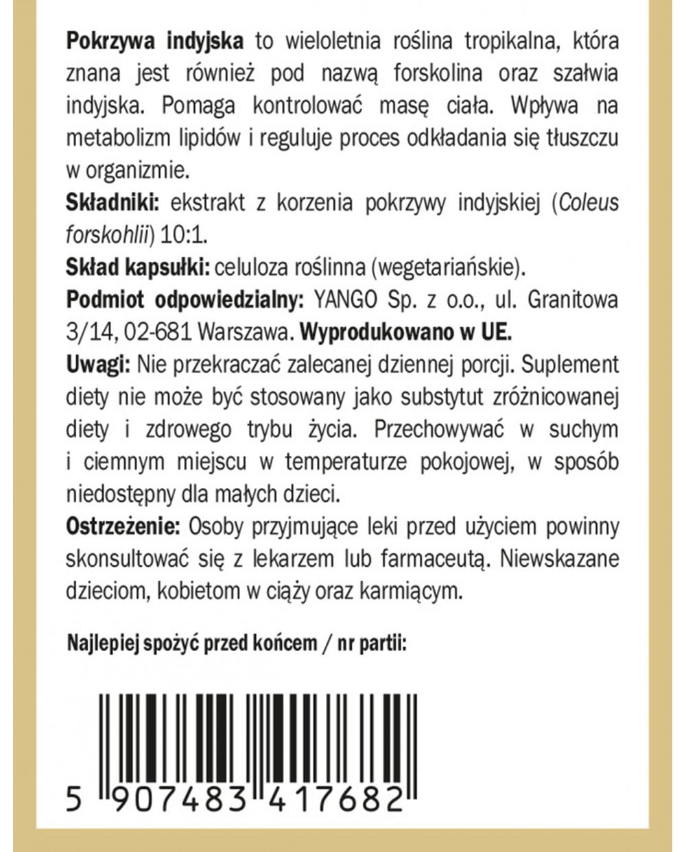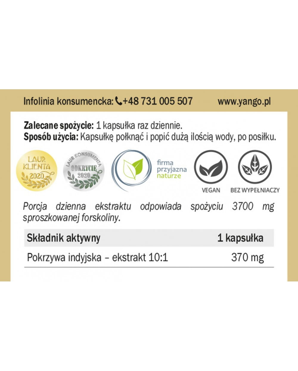 Yango - Forskolina - Pokrzywa indyjska - 90 kaps. - Kontrola Wagi