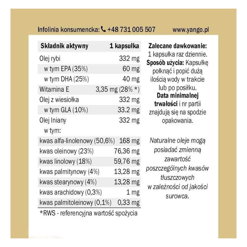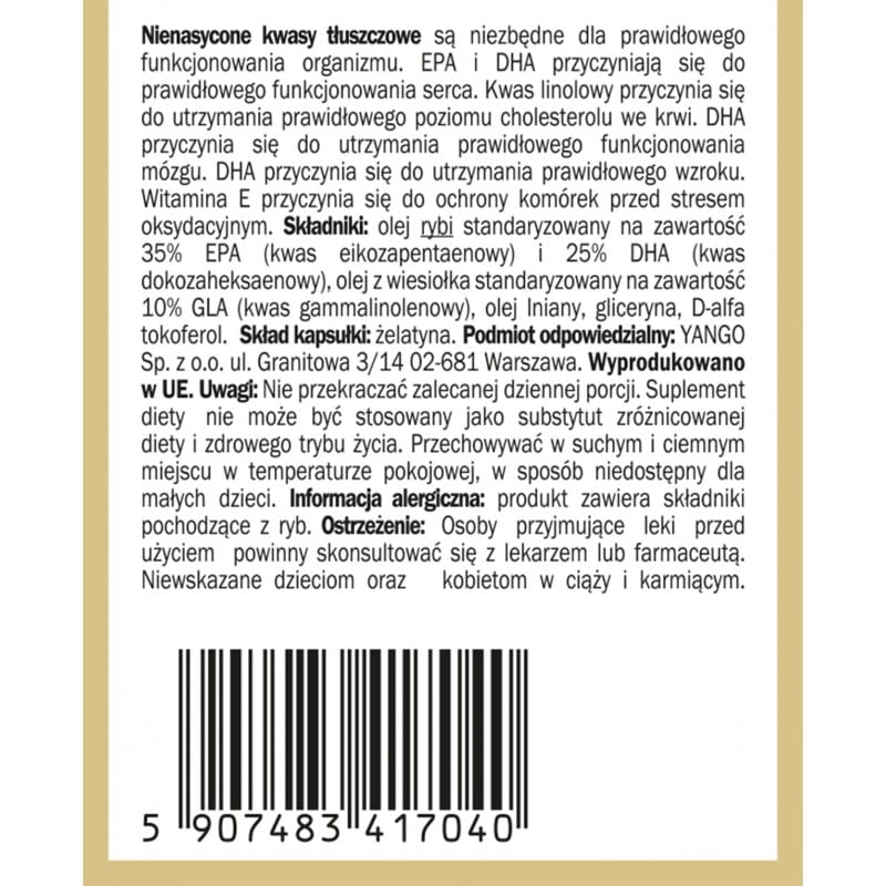 Yango - Omega 3-6-9 - 60 kapsułek - Nienasycone Kwasy Tłuszczowe
