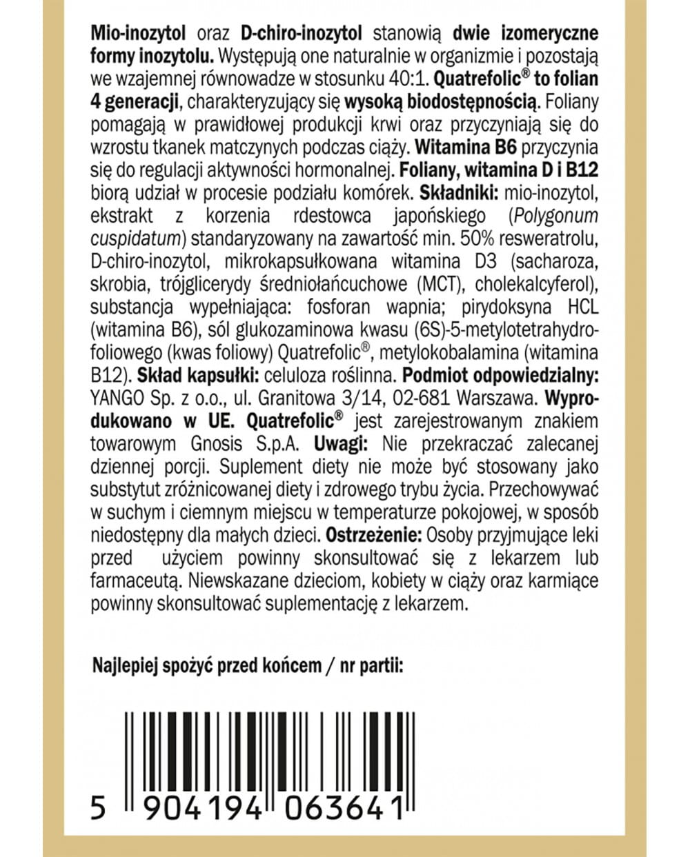 Yango - Ovuliv - 90 kapsułek - Mio Inozytol - D Chiro Inozytol