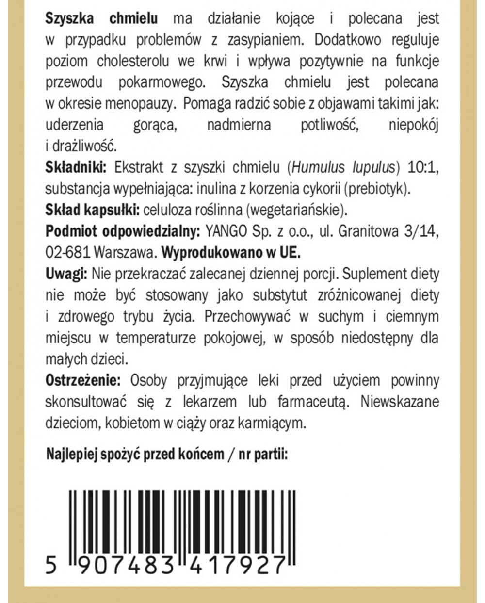 Yango - Szyszka chmielu - ekstrakt - 60 kapsułek - Zasypianie